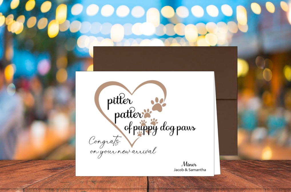 Card is blank inside. Select ink color for name on bottom right corner of card. Select white or colored envelope. For colored envelope, colors are preselected. Optional to add return address to envelope for additional fee. Sticker embellishment included for envelope.