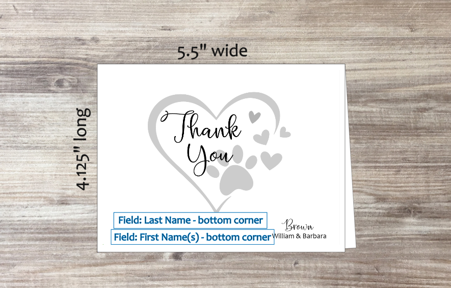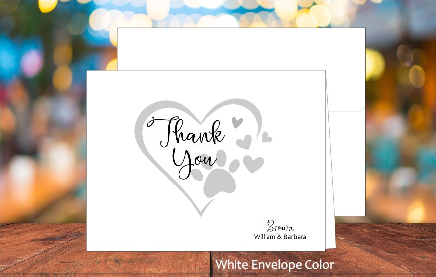 Card is blank inside. Select ink color for name on bottom right corner of card. Select white or colored envelope. For colored envelope, colors are preselected. Optional to add return address to envelope for additional fee. Sticker embellishment included for envelope.
