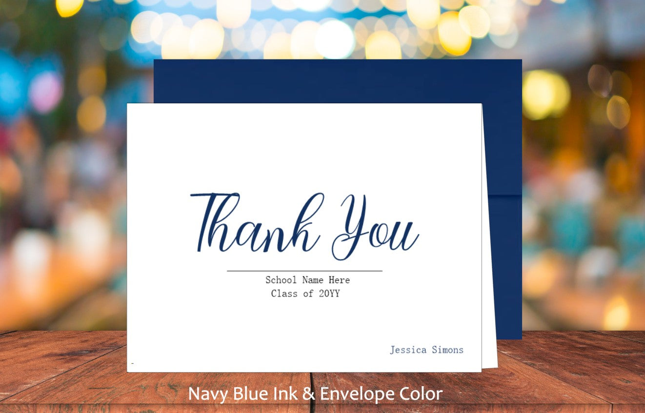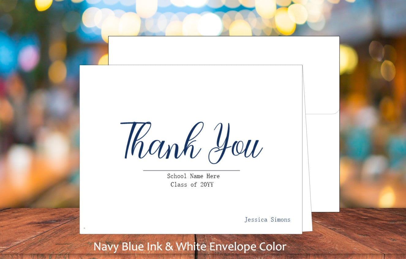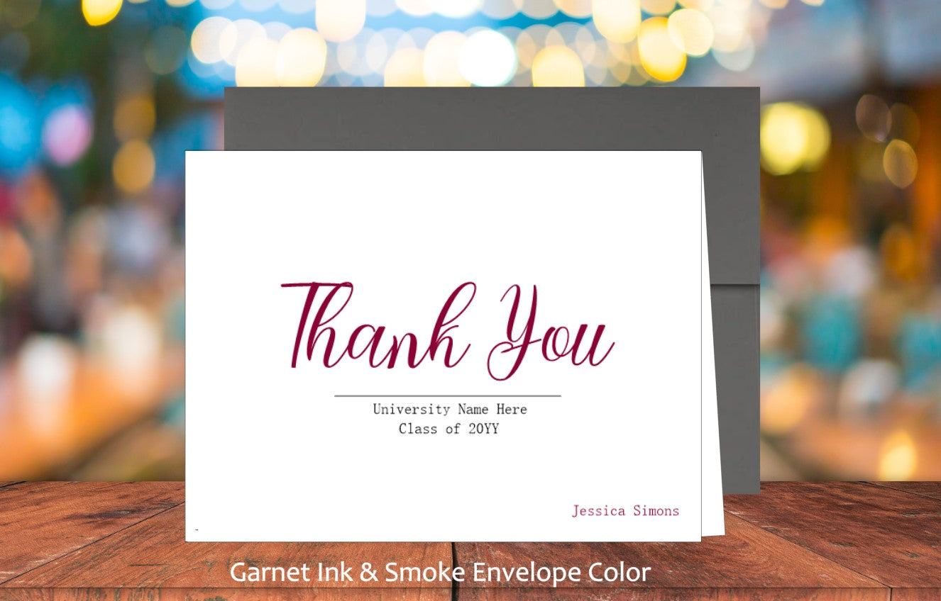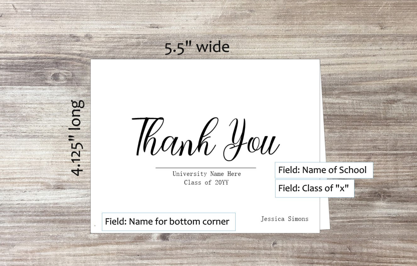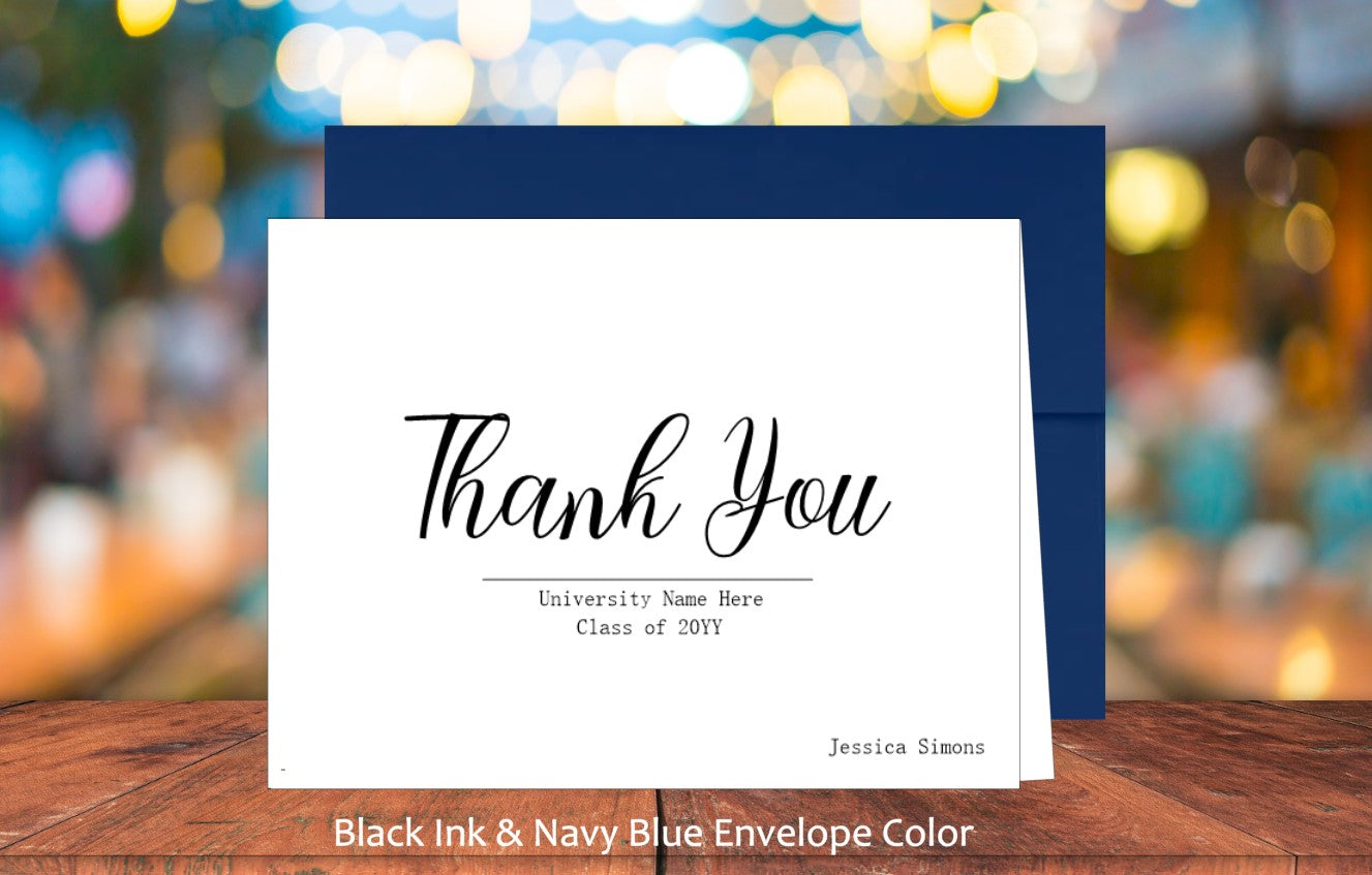 Card is blank inside. Select ink color for name on bottom right corner of card. Select white or colored envelope. For colored envelope, colors are preselected. Optional to add return address to envelope for additional fee. Sticker embellishment included for envelope.